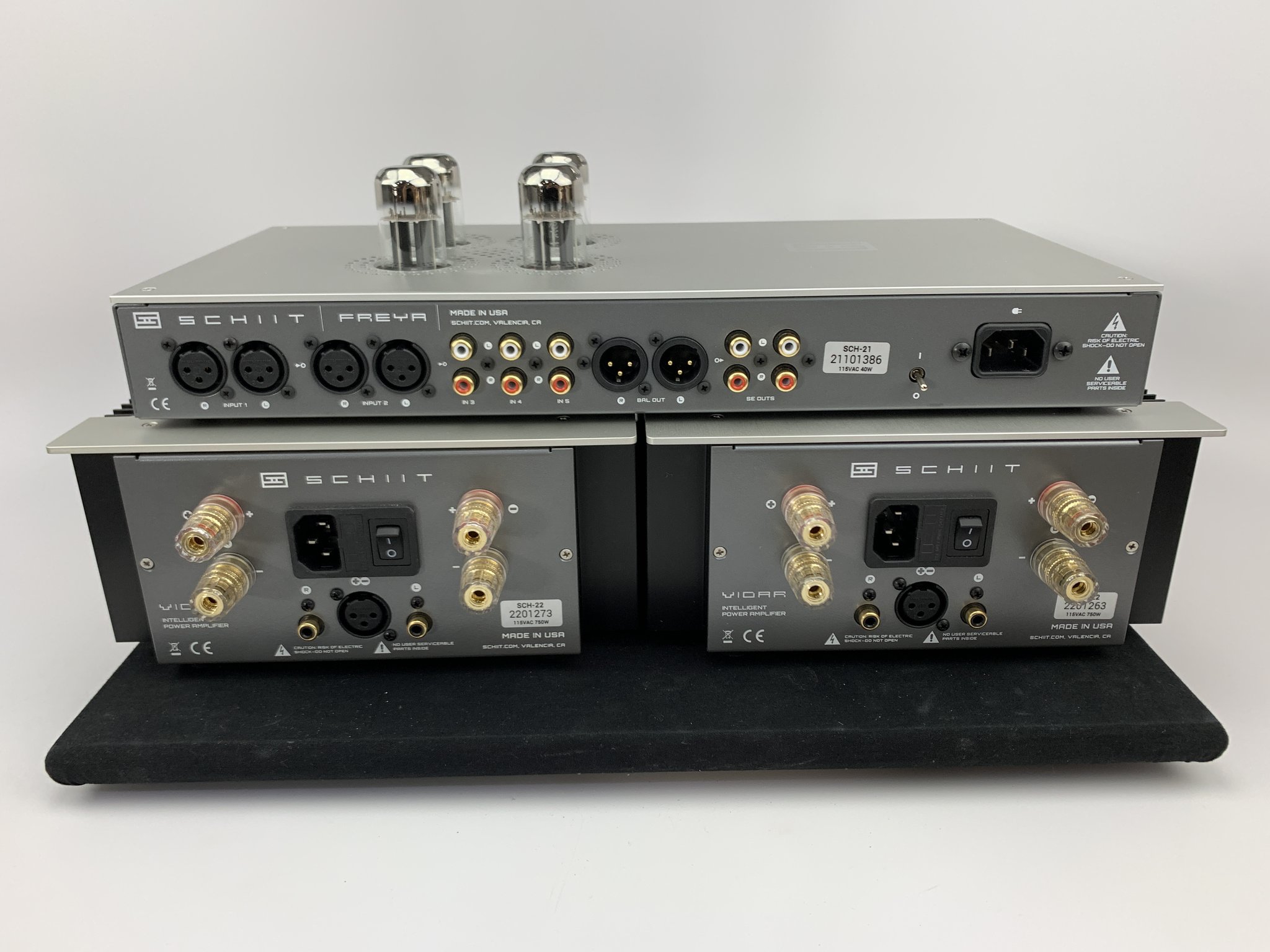 In this review, Schiit’s Freya+ balanced, 4 tube pre-amp is coupled with Schiit’s Vidar amplifiers as mono blocks, driving the Magnepan 4 Ohm, LRS speakers.